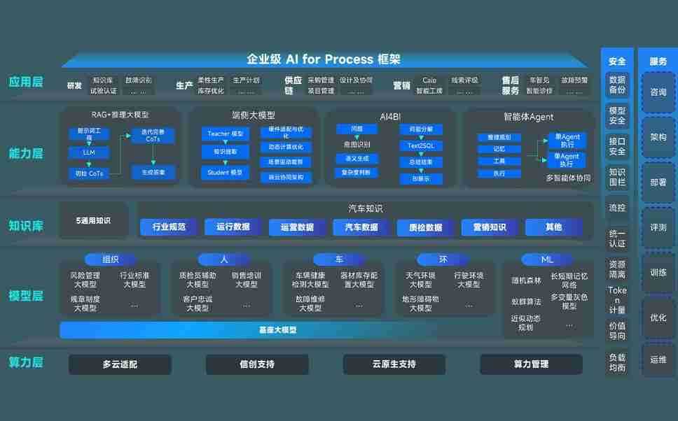 端到端的一站式AI工作空间深度融合了从企业战略规划到日常经营的全流程业务板块,,,定向解决车企内部领域多、、、、部门多、、、、链条长、、、场景碎片化等难题,,,,支持车企快速构建以AI为核心的生产力写作体系,,实现任务执行与AI能力的无缝集成与交互